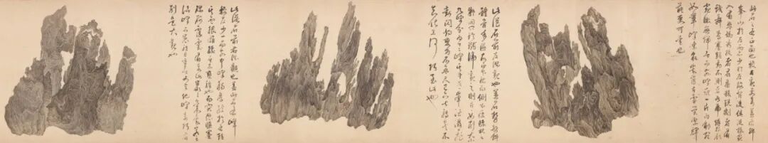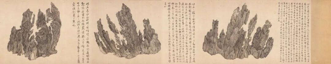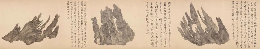 1.“吴彬:十面灵璧图”,洛杉矶郡立博物馆,2017年12月10日-2018年6月24日。 2.“文人石、园林艺术及书画大观”,纽约大都会艺术博物馆,2000年2月1日-8月20日。 3.“怪石:伊恩和苏珊·威尔逊藏中国赏石及文玩藏”,芝加哥艺术博物馆,1999年5月1日-8月1日。 4.“天堂之路”,斯特博物馆,苏黎世,1998年5月-8月。 5.“天地中的天地:罗森·布鲁姆藏中国文人石”,塞克勒博物馆,哈佛大学,剑桥,1997年5月10日-7月20日。1. Wai-ching Ho:《董其昌国际学术研讨会论文集》,第4-21页,图2,纳尔逊·阿特金斯艺术博物馆,1992年。2.何慕文:《趋古:台北国立故宫博物院珍品特展》(1997-1998年),第48页,纽约大都会艺术博物馆,1996年。3.蔡九迪:《蒲松龄和聊斋志异》,第81-86页,插图第84-85页,斯坦福大学出版社,斯坦福,1997年。4.Mowry, Robert:《天地中的天地》,第224页,哈佛大学,1997年。5.Schneiter,Daniel,and Claudia Brown:《天堂之路》,第77-81页,苏黎世斯特博物馆,1998年。6.张洪:《后拍卖时代:纽约中国绘画》,《怀古堂》,1999年春季刊第十一期,第52-61页。7.斯蒂芬·利特尔:《怪石: 伊恩和苏珊威尔逊藏中国赏石及文玩》,加州大学伯克利出版社,1999年。8.Philip Ursprung:《赫尔佐格和德梅隆:自然的历史》, 第112-113页, Canadian Centre,2002年。9.丁文父:《中国古代赏石》,第54页,图36,三联书店,2002年。10.黄晓、贾珺:《吴彬<十面灵璧图>与米万钟非非石研究》,《装饰》2012年8月,总第232期,第62-67页。11.何慕文、巫鸿:《古法今用:纽约大都会博物馆当代水墨艺术大展》,图83,纽约大都会艺术博物馆,2013年。 12.陈韵如:《奇幻真如:试论吴彬的居士身份与其画风》,《中正汉学研究》,2013年6月第1期,总第二十一期,第251-278页。13.沈歆:《从画山到画石:奇石、观看与吴彬的山水画创作》,《文艺研究》2015年第7期,第134页。14.马科斯·弗拉克斯:《岩壑奇姿——十七世纪吴彬画卷<十面灵璧图>研究》,Sylph Editions,2017年。15.贾珺、黄晓、李旻昊:《古代北方私家园林研究》,第152-156页,清华大学出版社,2019年。14.马科斯·弗拉克斯:《片云:吴彬的十面灵璧》,Sylph Editions、佳作书局,2020年9月。1.(明)李维桢:《大泌山房集》卷一百二十六,明万历三十九年(1611)刻本。2.(明)董其昌:《容台别集》卷四,明崇祯三年(1630)董庭刻本。4.(明)陈继儒:《白石樵真稿》卷十六,《尺牍》卷三,明崇祯刻本。5.(明)邹迪光:《石语斋集》卷二十二、二十六,明刻本。 7.(明)孙承泽:《春明梦余录》卷六十五,清四库全书本。8.(清)朱彝尊:《钦定日下旧闻考》卷四十四,清乾隆刻本。2.米万钟、李维桢、董其昌、叶向高、陈继儒、邹迪光、张师绎、高出、黄汝亨、萨迎阿、耆英题跋。